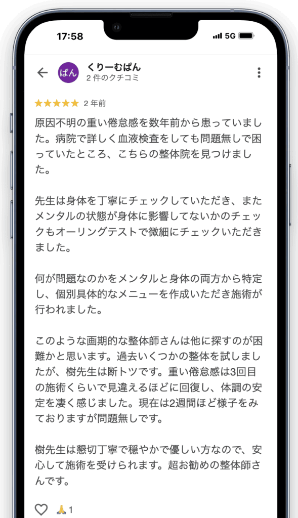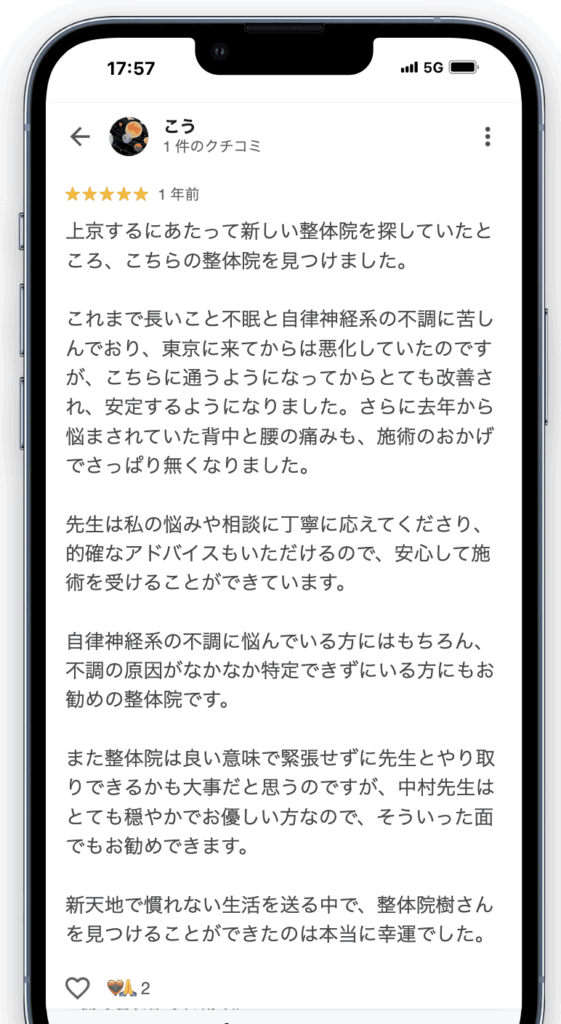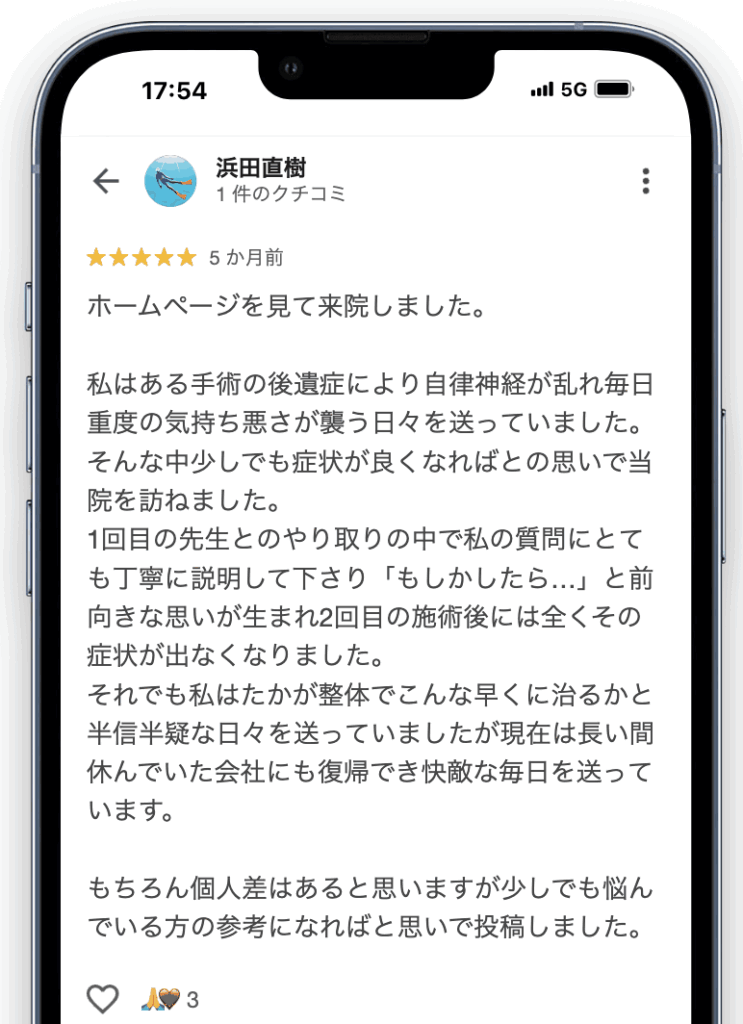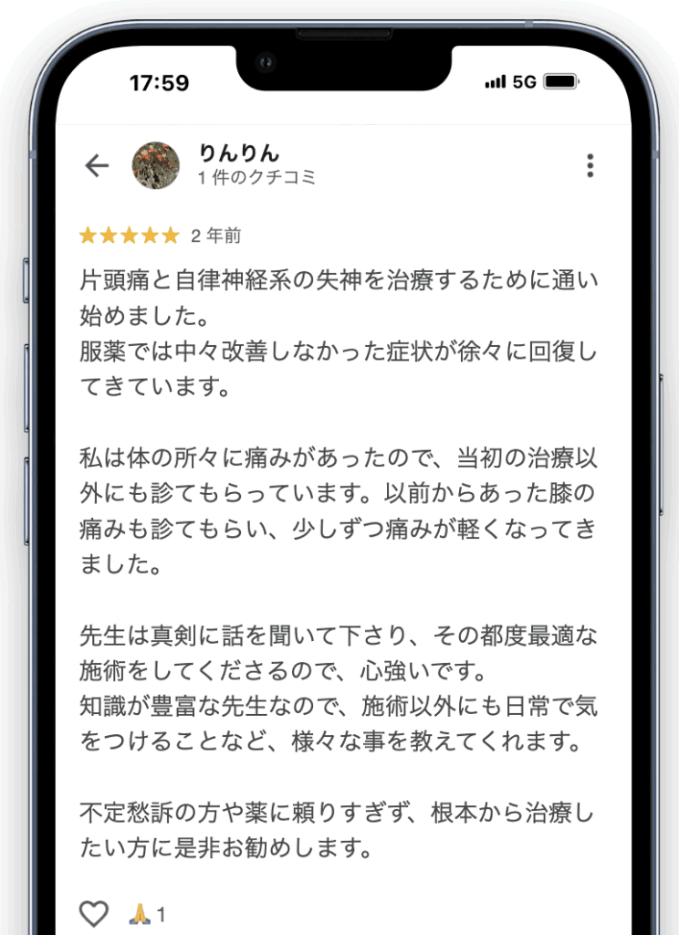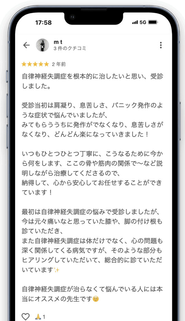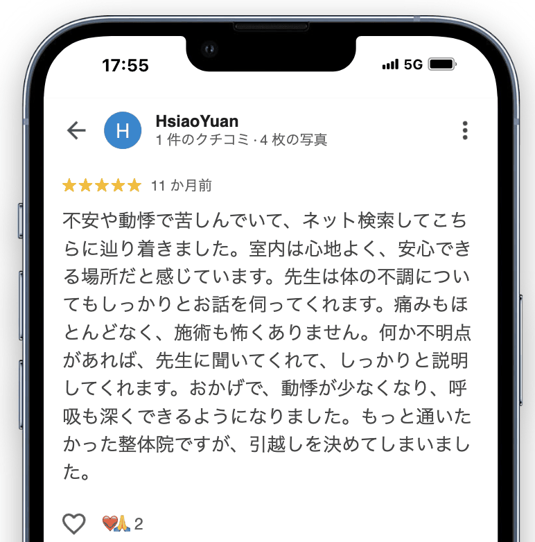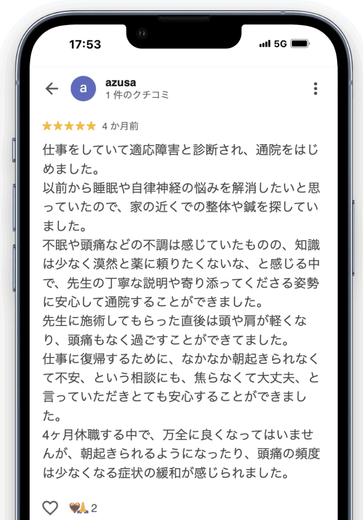 お客様の声 2025 02/15 Published 2025.02.15 / user 目次 Toggle 適応障害でお悩みの方の口コミ自律神経の乱れでお悩みの方の口コミ生理痛でお悩みの方の口コミ胸の苦しさや動悸、パニック症状でお悩みの方からの口コミ不眠、眠りづらさでお悩みの方からの口コミ肩こり、頭痛などでお困りの方からの口コミひどい倦怠感でお悩みの方からの口コミ 適応障害でお悩みの方の口コミ 自律神経の乱れでお悩みの方の口コミ 生理痛でお悩みの方の口コミ 胸の苦しさや動悸、パニック症状でお悩みの方からの口コミ 不眠、眠りづらさでお悩みの方からの口コミ 肩こり、頭痛などでお困りの方からの口コミ ひどい倦怠感でお悩みの方からの口コミ